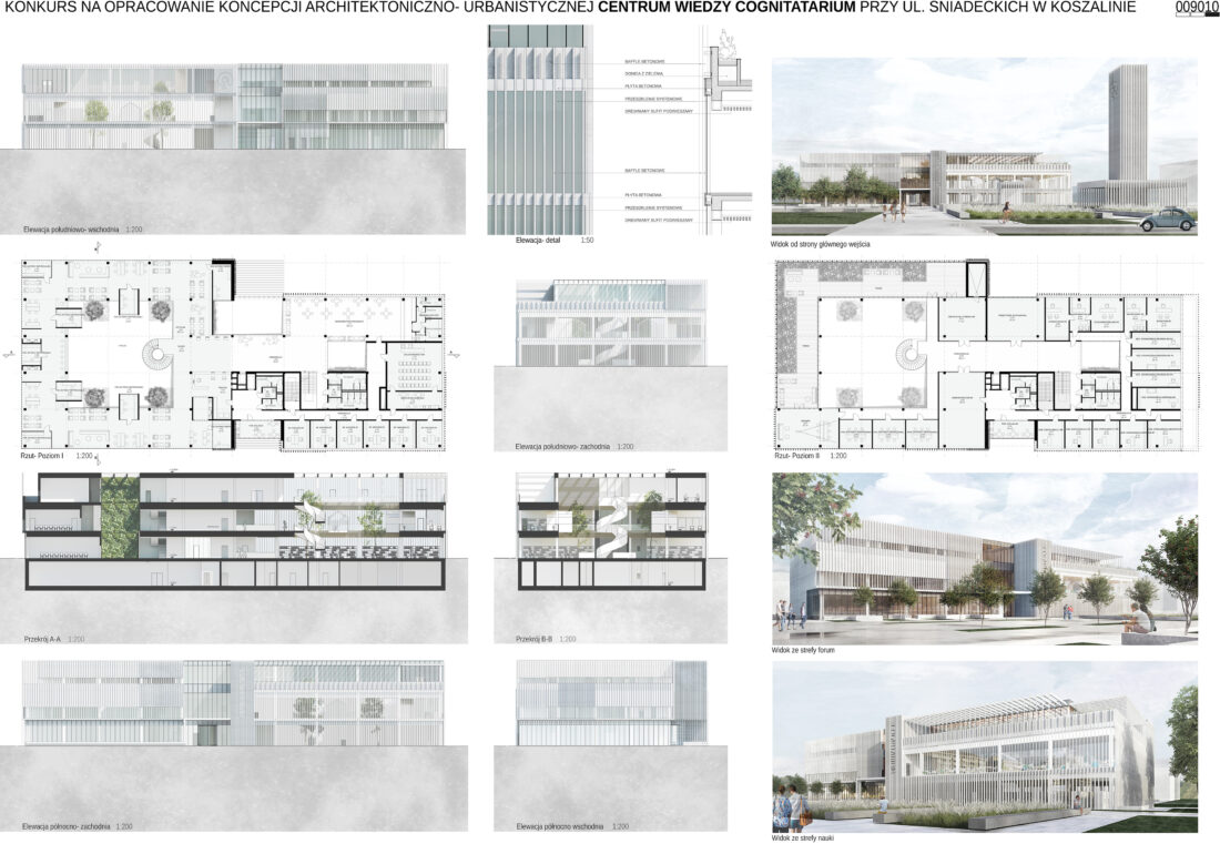 Otwarcie przestrzeni kampusu na użytkownika spoza uczelni, na mieszkańca Koszalina- ekspozycja od strony ul. Śniadeckich (z jednoczesnym podkreśleniem wagi tej przestrzeni poprzez wprowadzenie wieży Clausius’a).