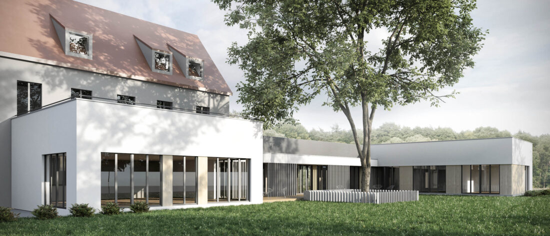 Rozbudowa opierająca się na połączeniu dwóch obiektów oraz rozbudowie o dodatkowe sale zajęć.