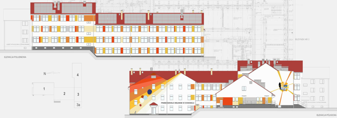 Termomodernizacja wraz z modernizacją układu wentylacji szkoły oraz zaplecza kuchennego i administracyjnego, wymianą okien na okna o wysokim poziomie izolacji termicznej oraz wymianą oświetlenia na energooszczędne. Całość nowoprojektowanej infrastruktury ma być wspomagana przez prąd z projektowanego układu paneli fotowoltaicznych umieszczonych na południowych połaciach dachowych budynku szkoły. Zastosowana wentylacja mechaniczna posiada funkcję rekuperacji, czyli odzysku ciepła. Realizacja finansowana przez Fundusze Norweskie.